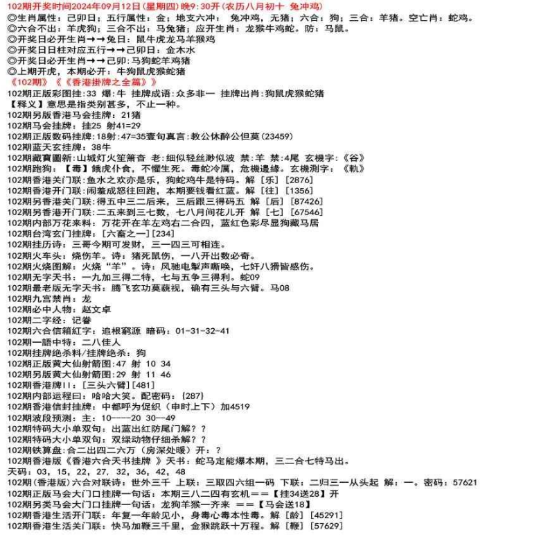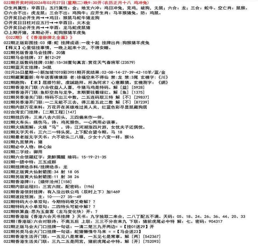111期开奖时间2022年12月29日(星期四) 晚9:30开 (腊月初七 龙冲狗)