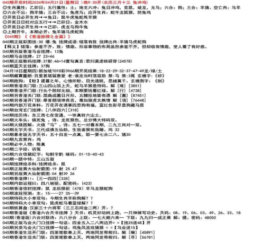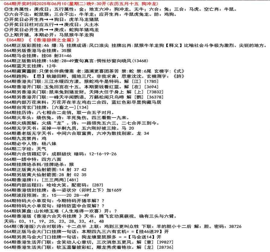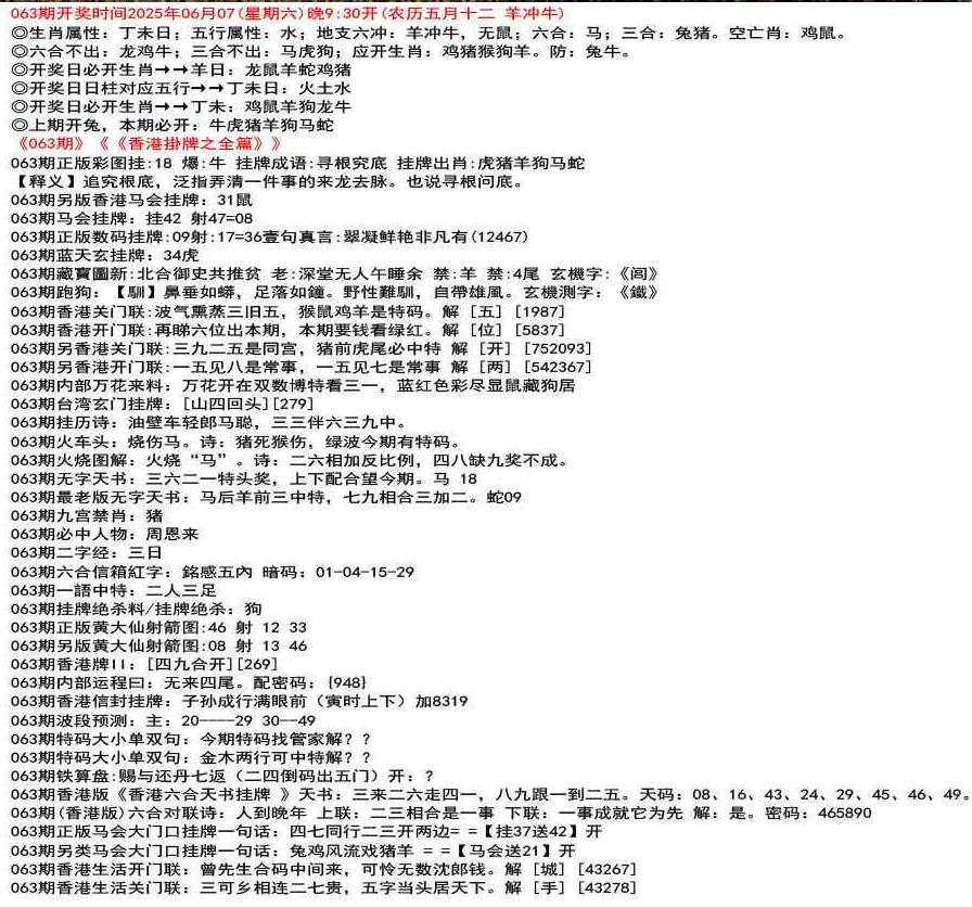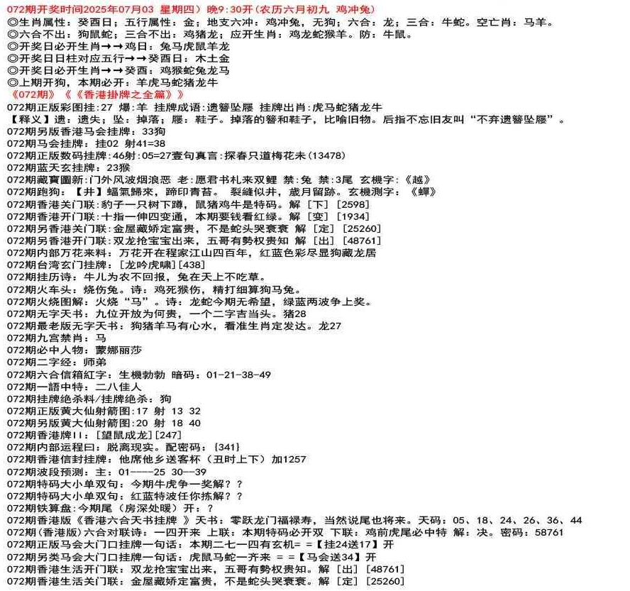 ◎六合不出:牛龙猴;三合不出:鼠蛇鸡;应开动物:羊兔猪虎狗。防:鼠马